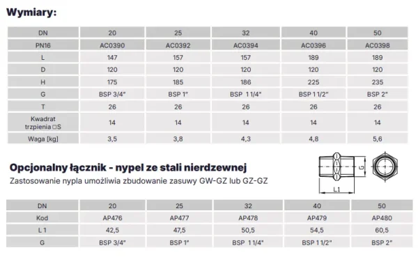 Typ przyłącza: półśrubunek z gwintem wewnętrznym i zewnętrznym BSP
